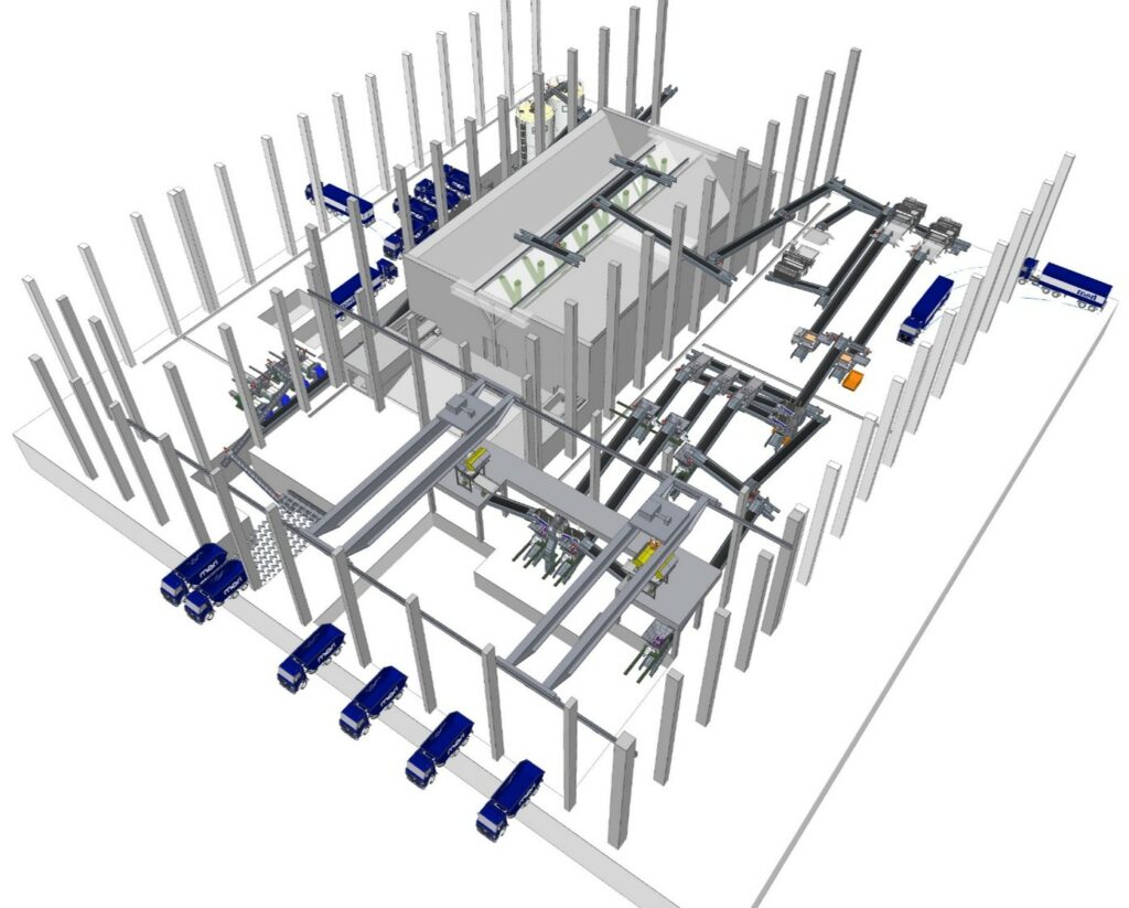 - Internal and external (e.g. for trucks) reception bunkers and walking floors